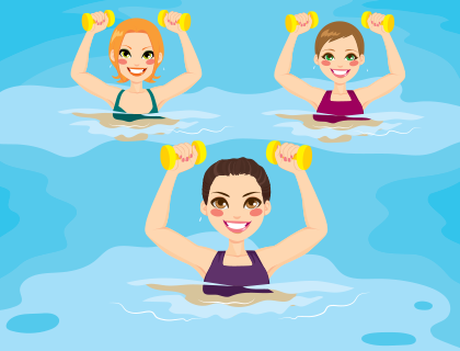 A hidroginástica é uma modalidade de atividade física anaeróbica, em grupo, que combina a música aos exercícios específicos realizados dentro da água/piscina, criando um ambiente motivador e incentivador para os participantes e diminuindo o impacto sobre as articulações. Melhora a capacidade aeróbica, a resistência cardiorespiratória, a força e a resistência muscular e a flexibilidade. Esses benefícios são conquistados utilizando o próprio corpo e a resistência gerada pela água, ou utilizando materiais acessórios, tais como "espaguetes", luvas, palmares, tornozeleiras e halteres específcos para atividades aquáticas, bolas, entre outros materiais A Hidroginástica proporciona um gasto calórico de 260 a 400 kcal por aula, variando de acordo com a intensidade com que se pratica a modalidade, sendo assim também ajuda no emagrecimento, na redução de peso e de gordura corporal. Para a prática de hidroginástica é necessário apenas um maiô/sunga e uma touca própria para piscinas, existem outros acessórios mas que não são obrigatórios, como a meia/sapatilha antiderrapante.